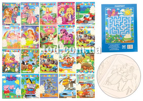 Раскраски с наклейками и лабиринтом, А5 12л., микс, Р