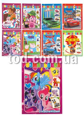 Раскраска с наклейками, А4, 16 л., Микс, Р