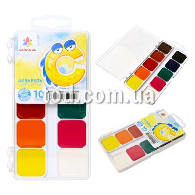 Акварель медовая, полусухая, 10 цв. с кисточкой, прозр.крышка, Увлечение (312043) , (04) Гамма